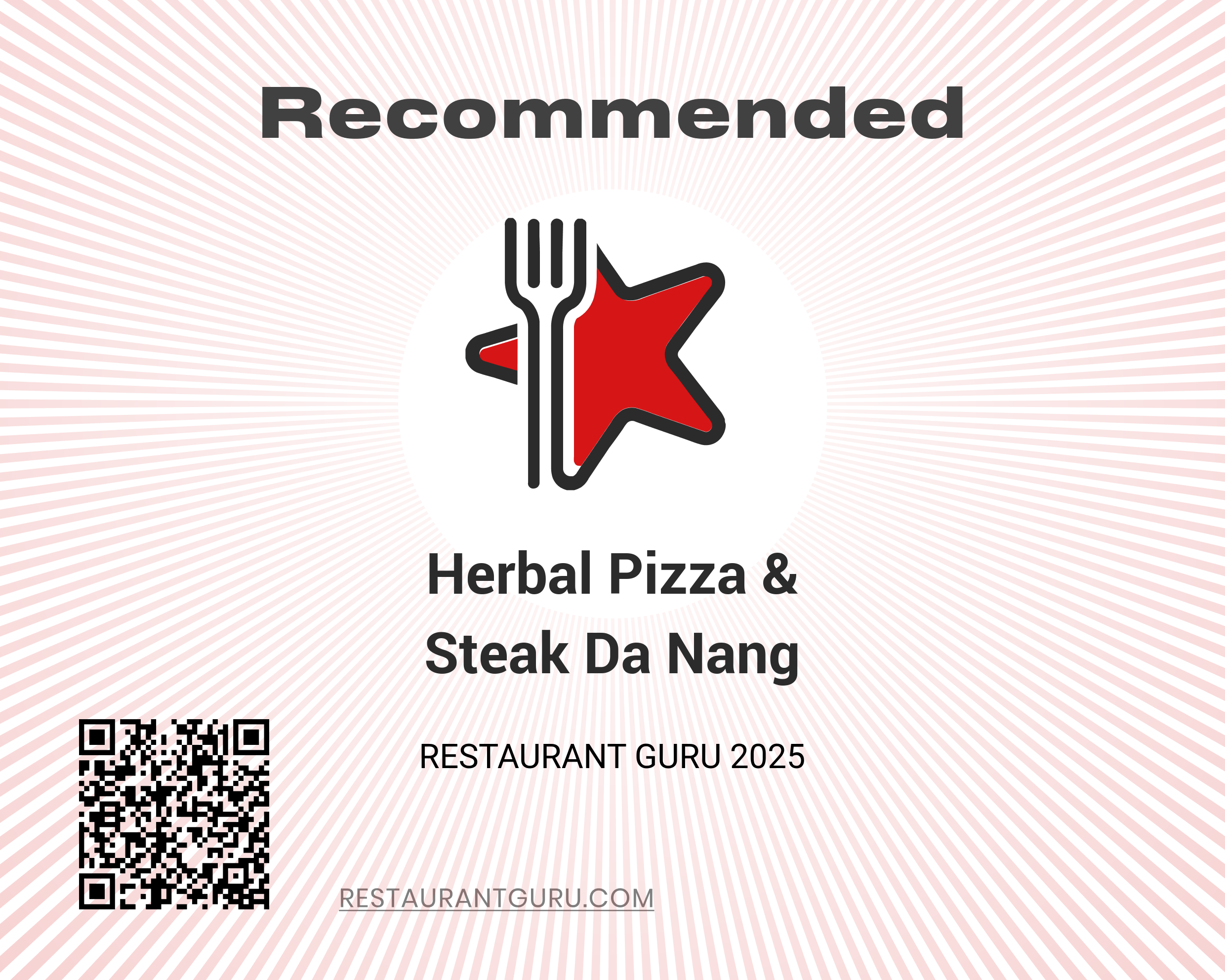Chúng tôi tự hào là thương hiệu được Restaurant Guru đề xuất, đạt Giải thưởng Doanh nghiệp APAC 2022, và năm 2025, đội thi Herbal Pizza & Steak đạt Giải Khuyến khích cuộc thi “Đầu bếp Đà Nẵng Food Tour” và vinh dự nhận giải “Sản Phẩm Dịch vụ Tiêu biểu Hội nhập Quốc tế” – minh chứng cho tinh thần sáng tạo và nỗ lực không ngừng.